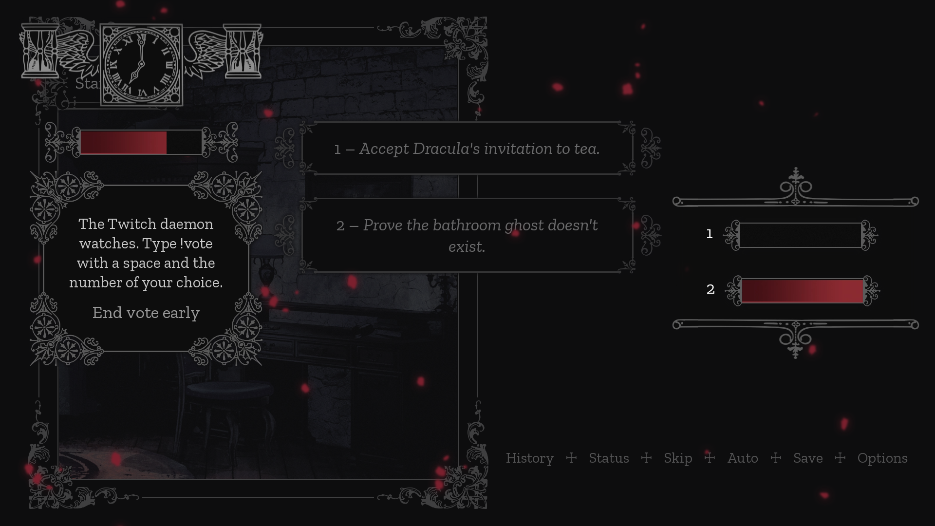 The Drăculești Twitch Daemon lets streamers place Renfield's fate in their chat's hands. Chat members can vote on choices when the Daemon is connected in the options menu, shaping both his personality and the direction of the story.
